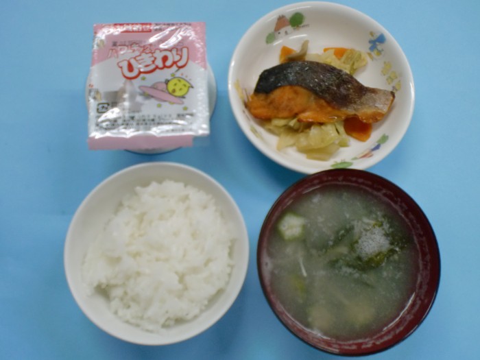 | 献立名 | ごはん 鮭のちゃんちゃん焼き 納豆 オクラ入りとろろ汁 |