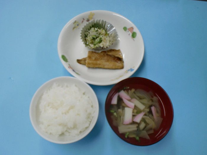 | 献立名 | ごはん さんまの蒲焼き 胡瓜ともやしのさっぱり和え きのこ汁 |