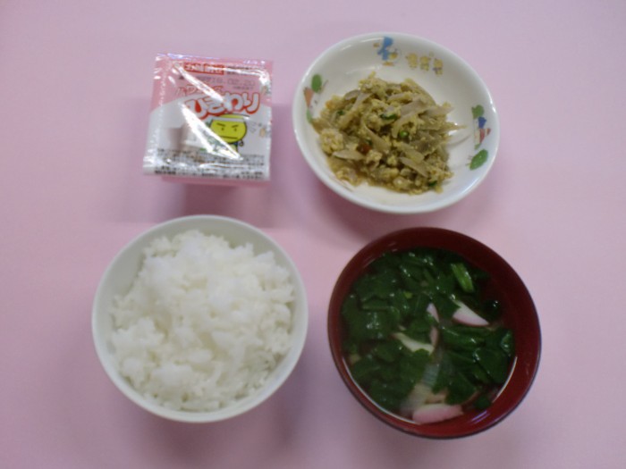 | 献立名 | ごはん ごぼうの柳川風 納豆 すまし汁 |