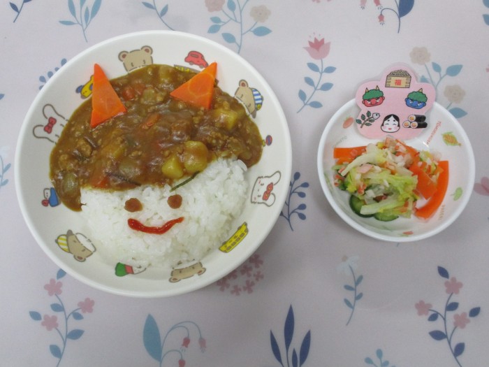 | 献立名 | 3日 節分キーマカレー 白菜とかにかまの和え物 |