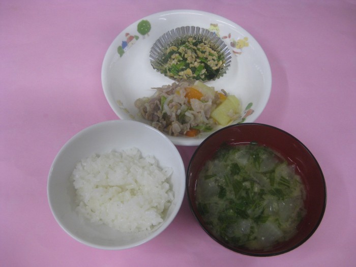 | 献立名 | ごはん 塩肉じゃが ほうれん草の納豆和え みそ汁 |
