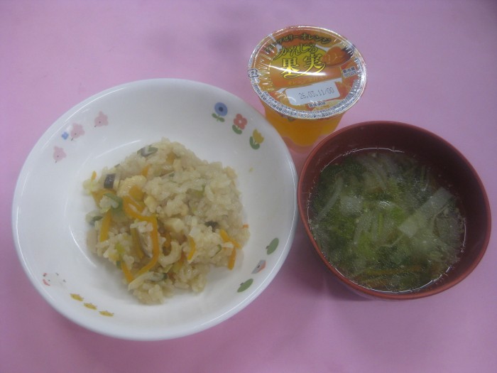 | 献立名 | 中華おこわ ワンタンスープ オレンジゼリー |