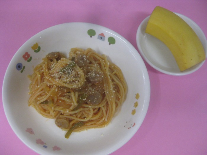 スパゲティナポリタン バナナ 献立表 主な材料(赤) ウインナー 粉チーズ 主な材料(黄) スパゲティ コーン 主な材料(緑) たまねぎ ピーマン とまと エネルギー量 422kcal たんぱく質 13.5g → 続きを読む 2026/04/11