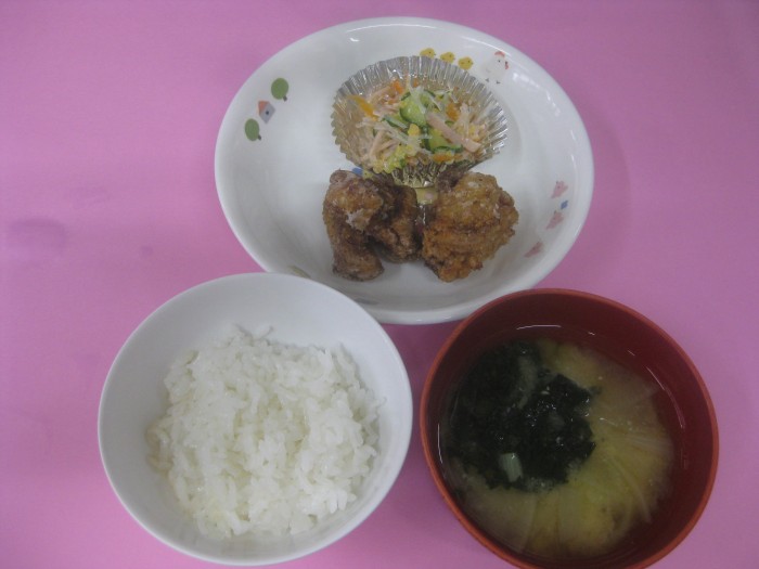 献立名 ごはん 鶏のからあげ 春雨サラダ みそ汁