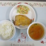 ごはん 豚肉のピカタ コールスローサラダ オニオンスープ